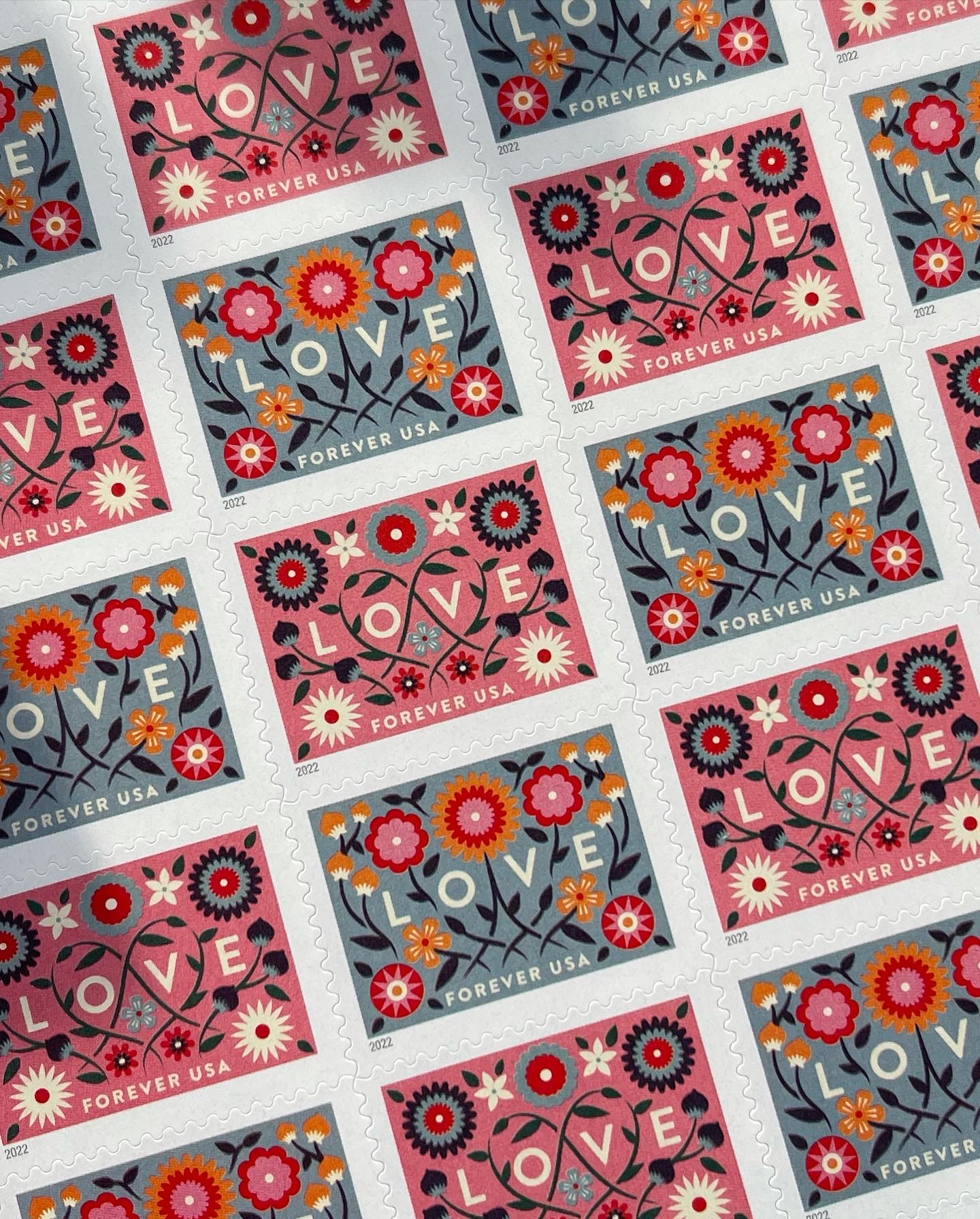 I had the honor of releasing a second Love stamp with the USPS in January 2022. When I was working on the concepts for the 2021 Love stamp nearly three years ago I had pitched a few different options, this design being one of them. The team ultimately wanted to produce my other stamp but asked if they could keep this as a backup to maybe or maybe not use some day. I was delighted to find out a few months ago that these were indeed being produced. Above I included a few other rough sketches. You can see the draft was really quite rough for the floral stamp when we started out. So fun to see it come full circle!