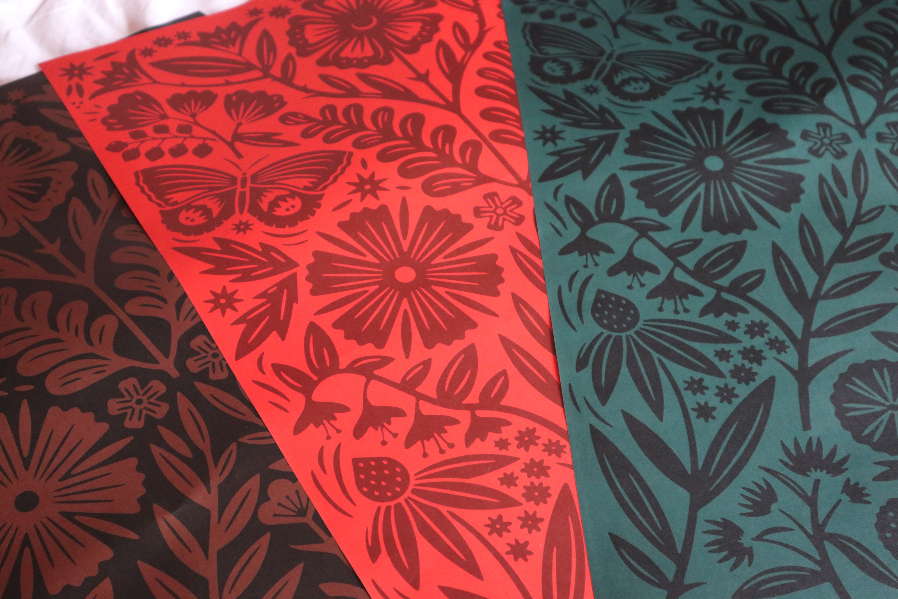 2021 holiday gift wrap, available in three colorways for purchase through my shop link